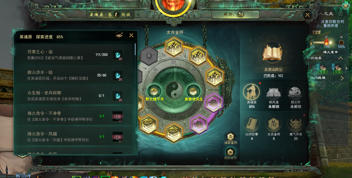 我的这次更新54不动了 先后完成了清雨 穷奇 一个支线 两个打小怪事迹 一个箱子事迹都没涨进度 现在没去了 |