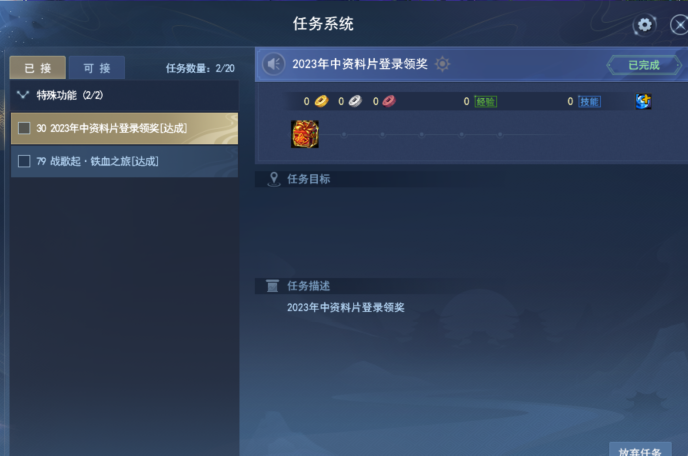 之前是登录的时候弹窗小广告有个登录礼界面直接领礼包,你这个应该是当时直接当没用的小广告关了没领- -我去反馈删任务 |