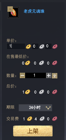 如题,今天演武完开了几个魂魄珠子,结果寄售卖完包里的金明显少了很多 重新寄售试了一下才发现,1J的珠子卖掉以后不仅要审核24小时才能到账,还要扣掉5Y的手续费,这个其实也都能接受 但是这个交易费比我珠子还贵 ...