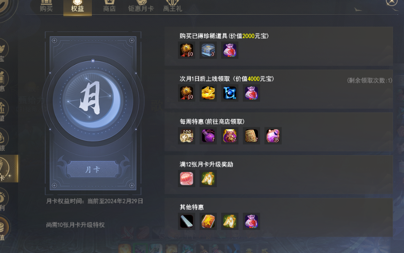 | 当月开下月的月卡权益还在的,就是一月月初开,要持续到二月底 |