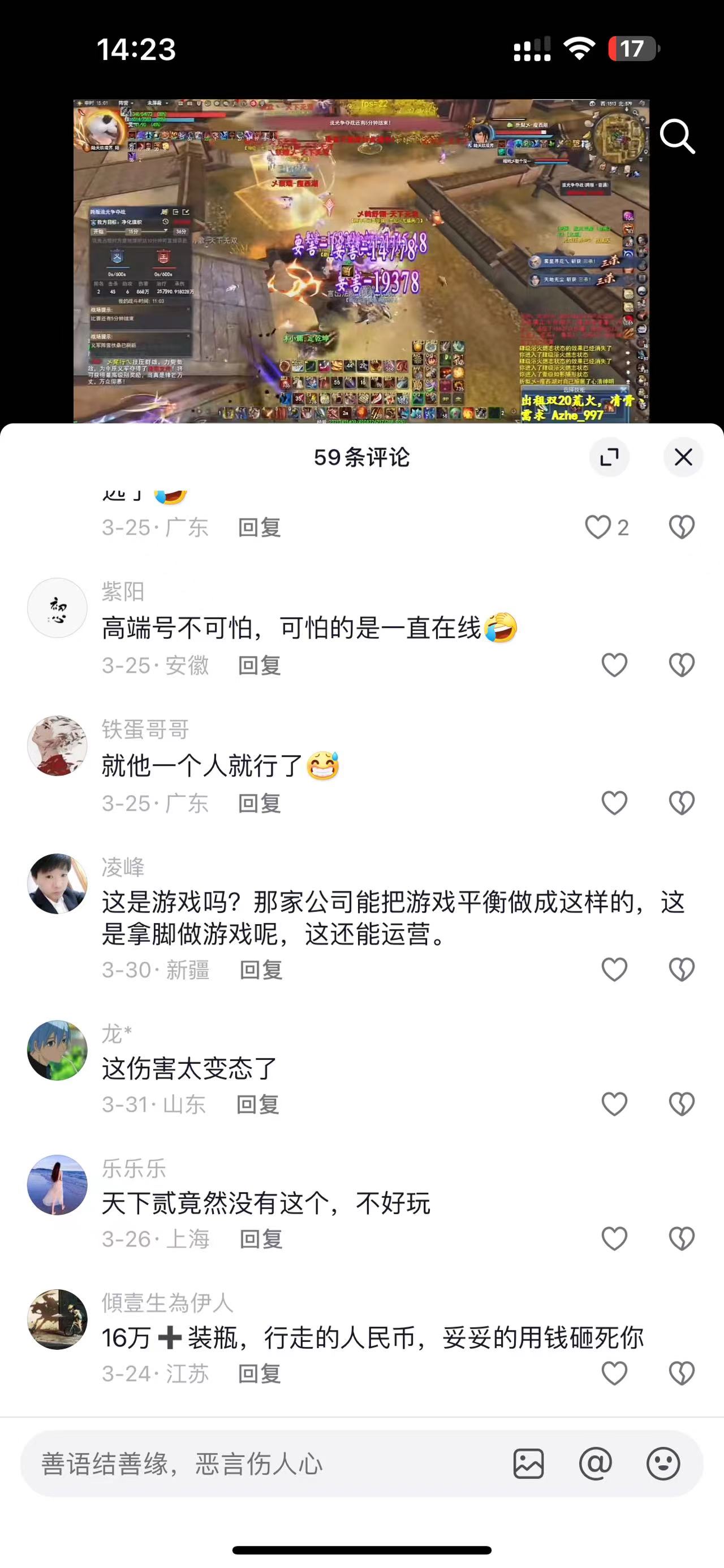 | 你们是不是歪楼了?这种档次的号啥门派都厉害,关键在于扫码仔全天轰炸。 |
