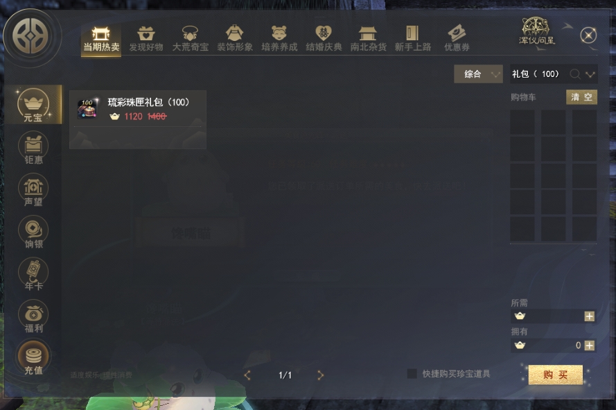 1个是1折 5个是2折 10个的是三折 以此类推 每种限购一次 你去开珍宝道具那里买就有显示了 |