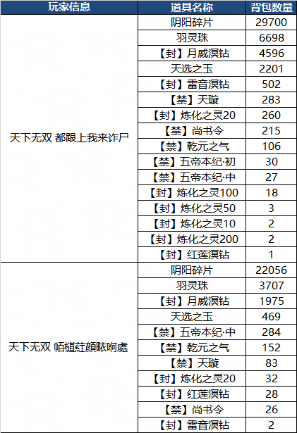 亲爱的各位少侠中午好: 在嫌疑名单公示后我们收到了部分名单内少侠的反馈,感谢他们提供了对应线索,官方会对利用漏洞的玩家追查到底,但也不会误判正常的玩家。 在执行处理前,我们根据线索进行了再次核验,发现以下问题: ①星火华彩-离火精相关的统计方式存在一定误差 ②绑定金、奇遇之闻、化外垂钓相关道具部分统计类型异常 对于正常参与玩法而被误判的玩家,官方表示深切的歉意,并将于本楼进行公示澄清,并发放额外的补偿 官方正在进行复查,由于时间久远,数据量级较大,预计在今晚21点-23点公示最新核查结果 |