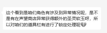 事情是这样的 今天晚上上线 领月卡饷银和签到奖励 发现包裹掉到地上了 然后去宠物商店买个每日礼包 发现物品栏被锁定了 我就奇了怪了 & ...
