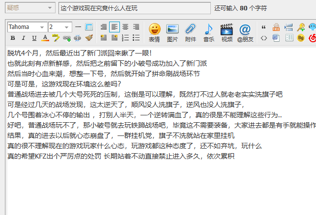 说难听点,很多大号基本装备都成型了。下战场也就是为了打人玩,哪个大号会认真给你洗旗子守旗子。![]() |