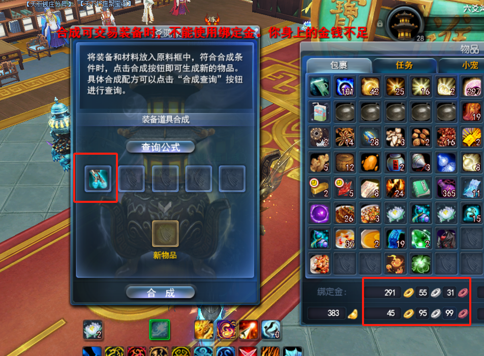这个是因为你可交易金币不够,当你可交易金币够的时候,它扣除的就是你绑定金币