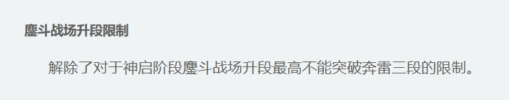 | 部分少侠的理解可能有些偏差,本赛季只是解除了鏖斗战场的段位上限限制,并没有扩大鏖斗战场的匹配范围哈,目前的超时等待扩大段位机制对于鏖斗战场来说仍然是独立的,报名鏖斗战场的奔雷叁端以下玩家并不会和堕星、噬月或者破日段的玩家一起匹配。 |