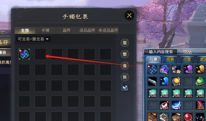 替换一下晶符文就行了 不过话说回来 这个设定就是....... 把手镯取下来点开手镯洗练界面 镶嵌晶符 镶嵌两次 你包里的就默认到手镯包裹了 |