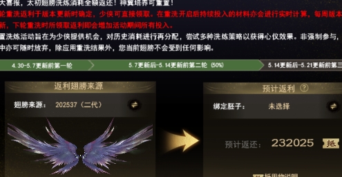 图片展示的是第三次的返还数量 如果下周三开放重洗 然后我下周三的时候继续用买的原石先继续洗第二次重洗的翅膀 重洗之后不满意 继续第三次重洗 这样周三更新后的我使用掉的 ...