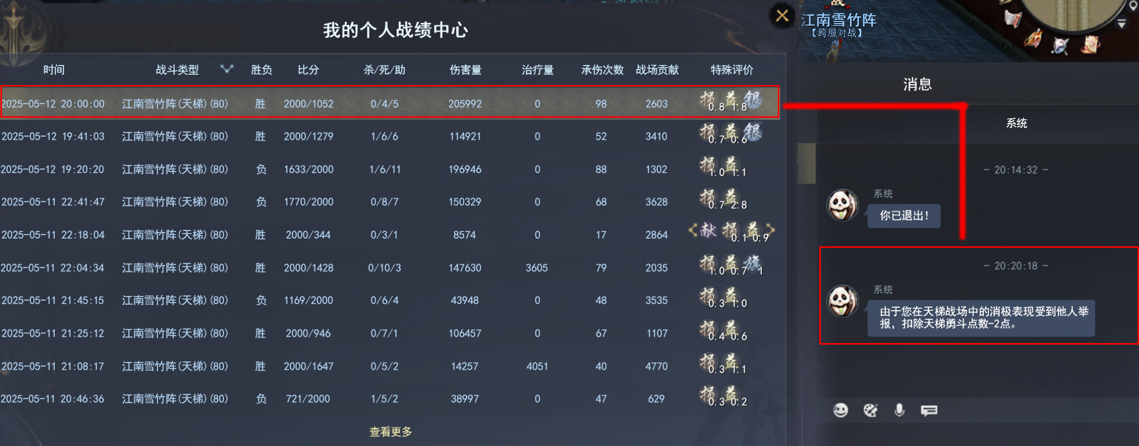 唯一一次被举报,雪竹我方赢的,整个过程算是顺风局,对面也有几个人转圈洗旗。前期洗旗,后期优势明显了我守旗,有2000+贡献,200+承伤,治疗20W+吧,被举报了,我请问呢![]() |