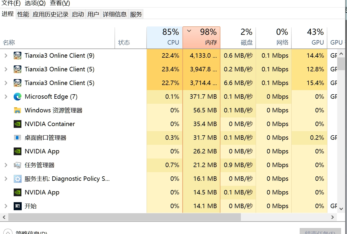 周三我更新完,惯例五开客户端,然后就悲剧了 游戏报错一次,客户端卡死两次,系统蓝屏死机一次 经过我两天各种倒腾,终于把虚拟内存从16G涨到40G,5开改3开,才能正常上线了 踏马的难怪DDR4内存条涨价了 |