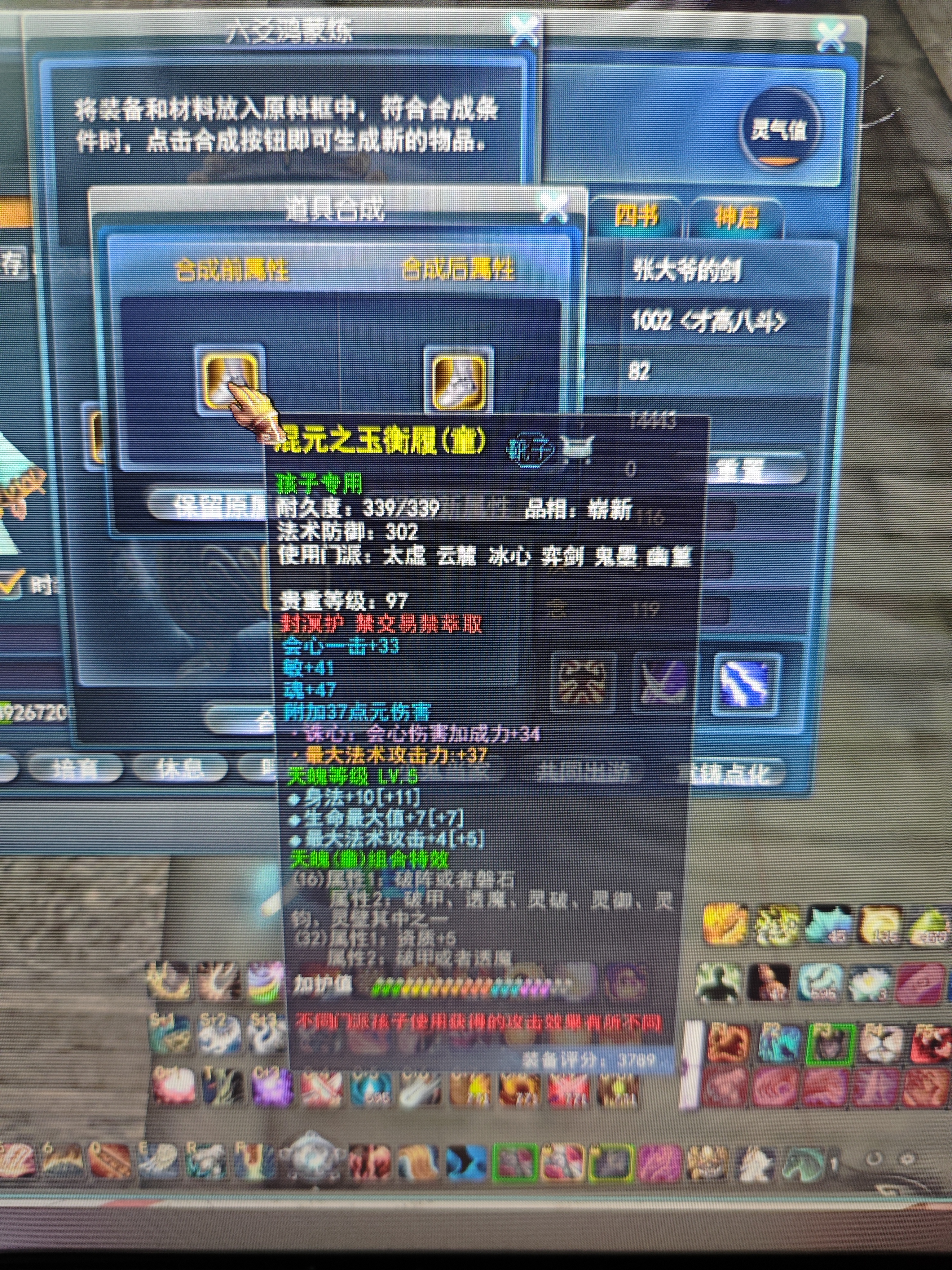 | 你的原属性是80世界套洗的 你后面的的那个是天魂套的属性 上限不一样 距离满属性也不一样 所以装瓶掉了很正常啊 |
