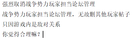 强烈禁止战争势力玩家担当论坛管理,无故删其他玩家帖子,只因游戏是敌对。