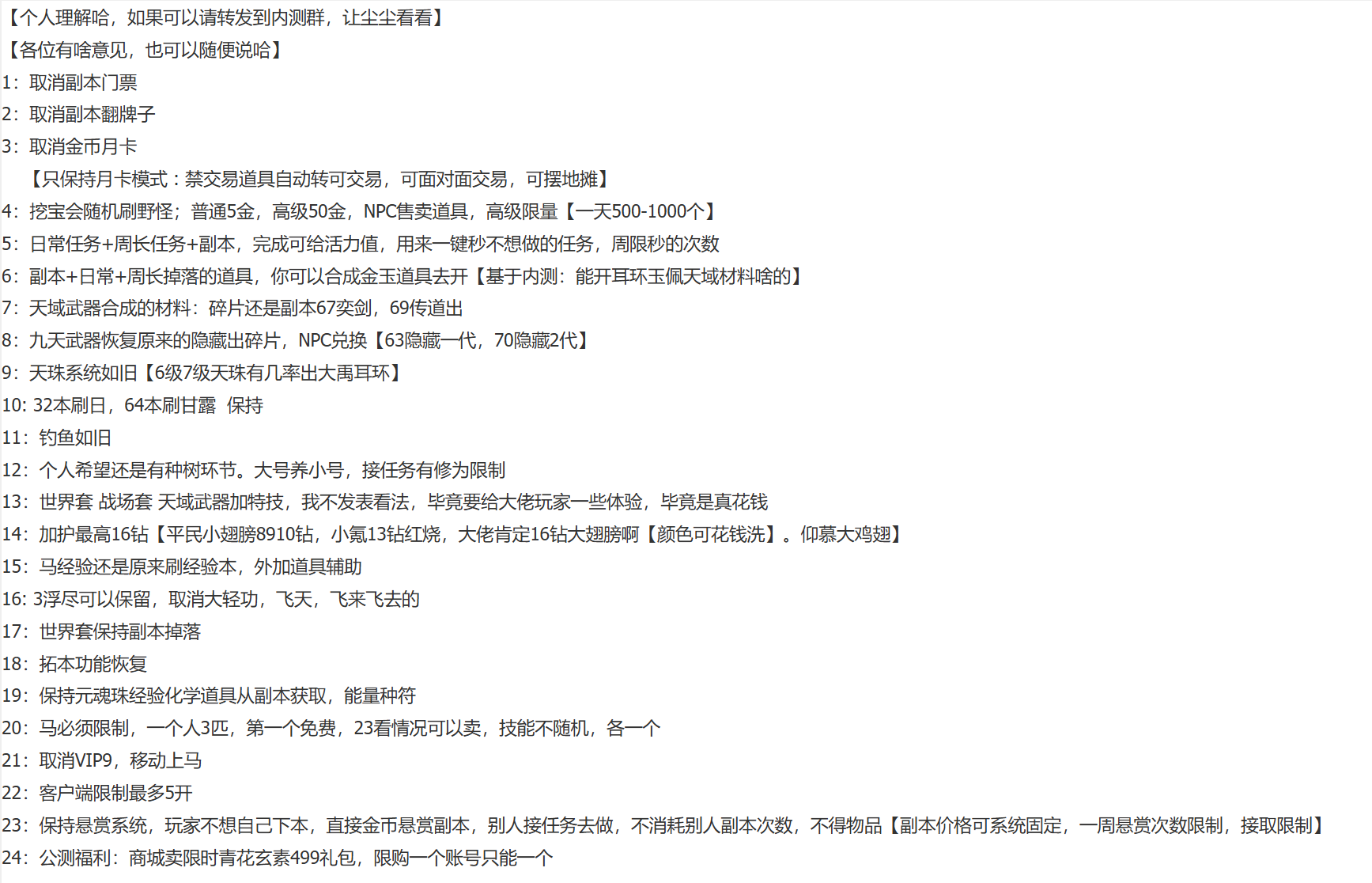 基于天下贰经典版【内测】看到的,未开放的 建议: