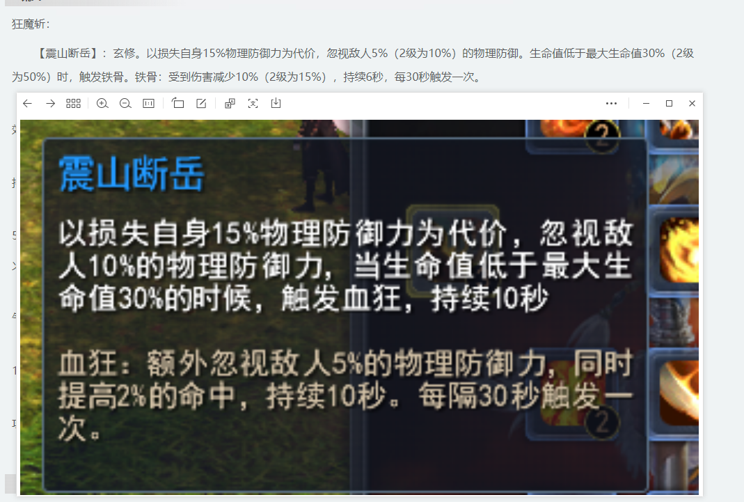 放眼望去 全是砍 会心流 去了身板 狂战不屈在第二排玄灵 以前点铁血丹心就能有铁壁御心15% 双防相互加成15% ,三级狂歌 根本没那么多点数加三级狂歌 。左边就更别说了无非就是 现阶段铁血丹心 效果变成了狂战不屈 ,震山想必没有人会点吧。砍了吸血伤数值,3秒的BUFF 还不能保证自己伤CD对齐。 喜感满满 |