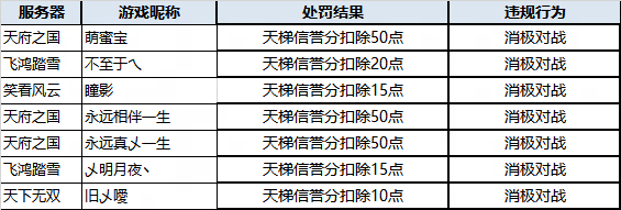截至2025年10月22日,我们收到了玩家对于天梯战场异常行为的举报,在核实具体举报信息真实性后回溯了被举报人员的天梯数据。 发现部分玩家确实存在天梯异常行为。 处罚公示如下: 望上述玩家引以为戒 ...