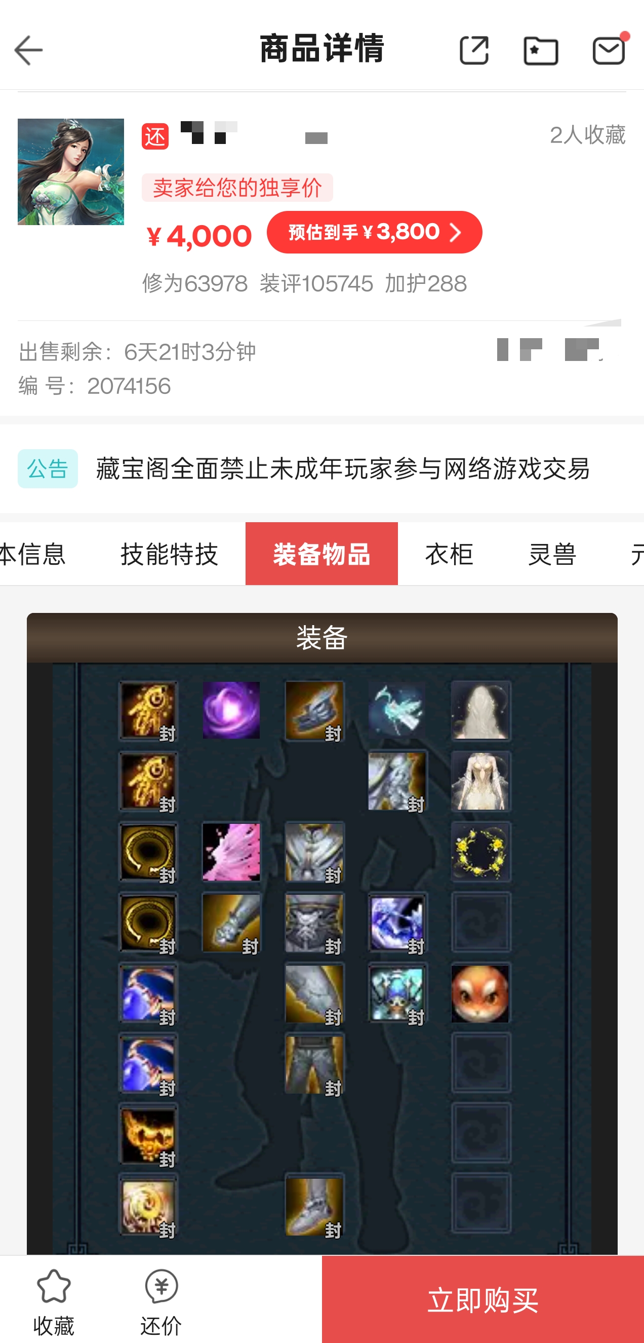 前几天有个人3千买的粉毒医,现在那个买主不想要了就上架没卖出去!!!太卷了