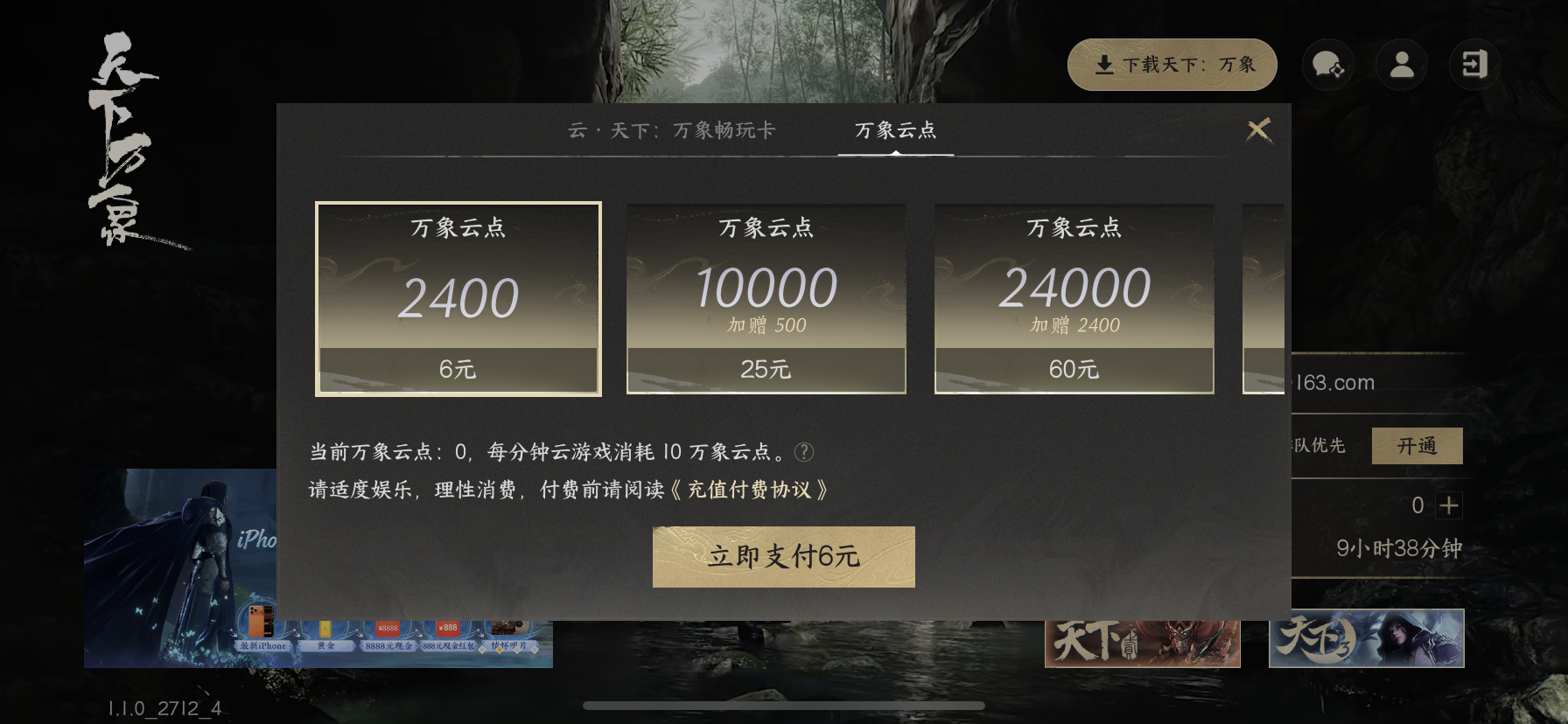 如图,手机玩云天下万象很顺畅,而且客户端很小不占内存。玩天下万象一直卡又闪退,而且客户端巨大,手机容量不足。 云天下万象用时间收费是什么道理,里面挂机日常貌似是一样的操作。