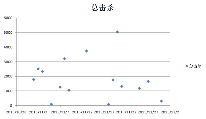 下图为11月份笑看风云流光梦境产生击杀散点分布图