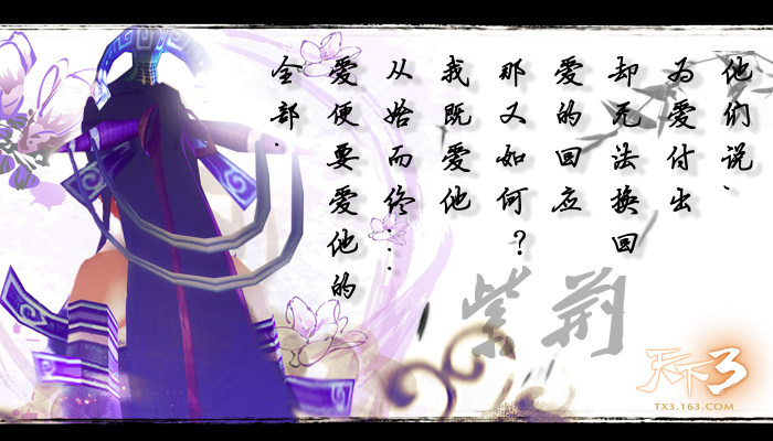 活动规则 1、帖子标题以“【来天下3,爱过才懂】”+其他内容,在任意板块发布,然后把帖子链接回复在本贴下即可; 2、本次主题需围绕:爱情。内容可为您玩天下期间曾经经历过的爱情,无论结果如何,想爱就要去心跳,去心碎,去痛哭,去拥抱,去放手,去欢笑,去经历,才会懂! 3、表现方式可以为:纯文字、图文(漫画也可)、视频等,秀恩爱神马的,记录你们的爱情的都阔以哦!
