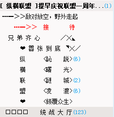 【精彩截图】 【占领情况】 氐巫寨:丶名将(逆袭)木克村:丷訫説(纵横) 石林:丷訫說(纵横)白水台:乄謎城(纵横) 盐泉村:情谊烟雨阁(逆袭) 五彩池:丶名将(逆袭) 八卦田:血刃 丹坪寨:三寸天堂 古皇陵: 丷眷恋(中立) 侯马屯:倾覆众生(纵横) 鼎湖:丷依恋(中立) 红石峡:刺客联盟(逆袭) 【战绩榜】 【击杀】 【伤害】 【治疗】 【死亡】 |