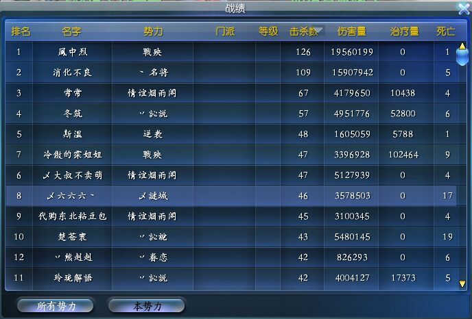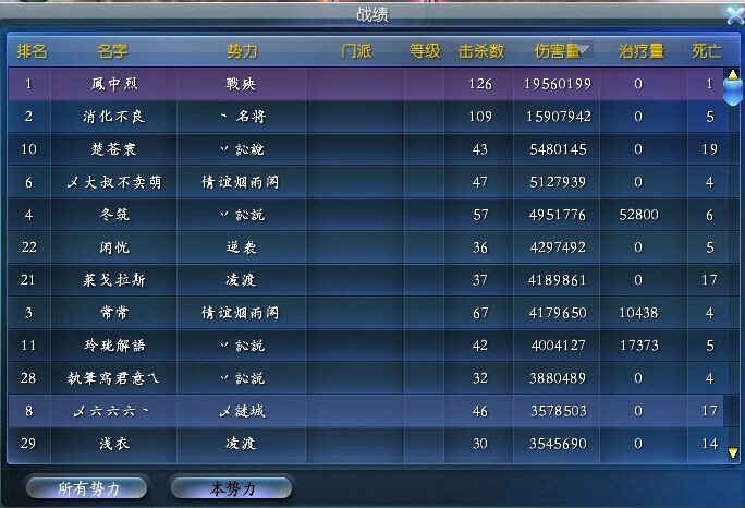 击杀、输出第一第二均为鬼幻化,鬼绝技着实有些变态 有心的都去悟绝技吧,趁着还没和谐伤害人数上限