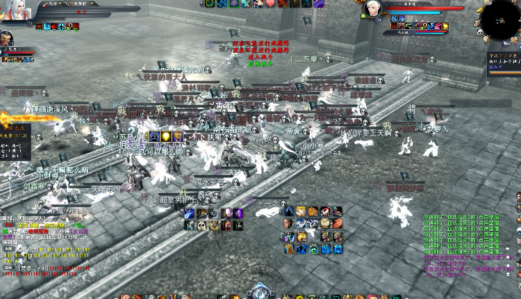 【交战过程】 9点,陷阵营与隐姓埋名统战,纵横联盟开始组团 未及,陷阵营与隐姓埋名联军进攻梦境纵横军,纵横撤退,开始摇人 9点20分,双方在东门金罐子处展开对攻,联军且战且走,退至东南角院落卡点,纵横攻入院落,联军失败 9点26分,陷阵营+隐姓埋名联军及少量九州人员复活西门后卡入西南角落房间 纵横四面包围院落后成功突入,联军再败一阵 9点36分,杀戮联盟开始摇人,杀戮与陷阵营分兵作战,38分,杀戮联盟进入梦境南门并二次卡入西南院落 纵横攻击院落同时陷阵营攻击纵横后方,但杀戮联盟抵挡不住纵横攻势,首先瓦解,最终联军全灭 9点46分,联军再次进入梦境卡入东门,纵横一如既往首先进攻东门,双方东门内互推成胶着之势 经过8分钟的混战,联军被全部击溃 而后联军进入幻化流光,9点57分,纵横在西门因分兵原因被联军击溃主力 10点03分,纵横全部进入北门,联军在台子集合,两分钟后双方几近同时发动进攻,在烽火台下战成一团 最终,联军不敌,短暂休整后,10点14分,双方在南门展开激烈对推,最终纵横获得胜利 10点17分,联军复活西门,纵横稍作追击后台子中间集合,联军进攻台子,纵横无反应 受损较大,流光开战,双方进入梦境再战 10点25分,联军卡入梦境东门,并首先对纵横发动进攻,依旧不敌落败 10点31分,纵横打周公时,联军再次突入,双方影杀出接战,战况胶着不下,战线拉开极长 加之人数刷不出,很难定位双方大团位置,经过十多分钟补位后,纵横取得最后胜利 【精彩截图】